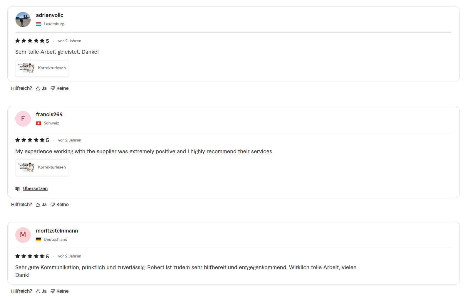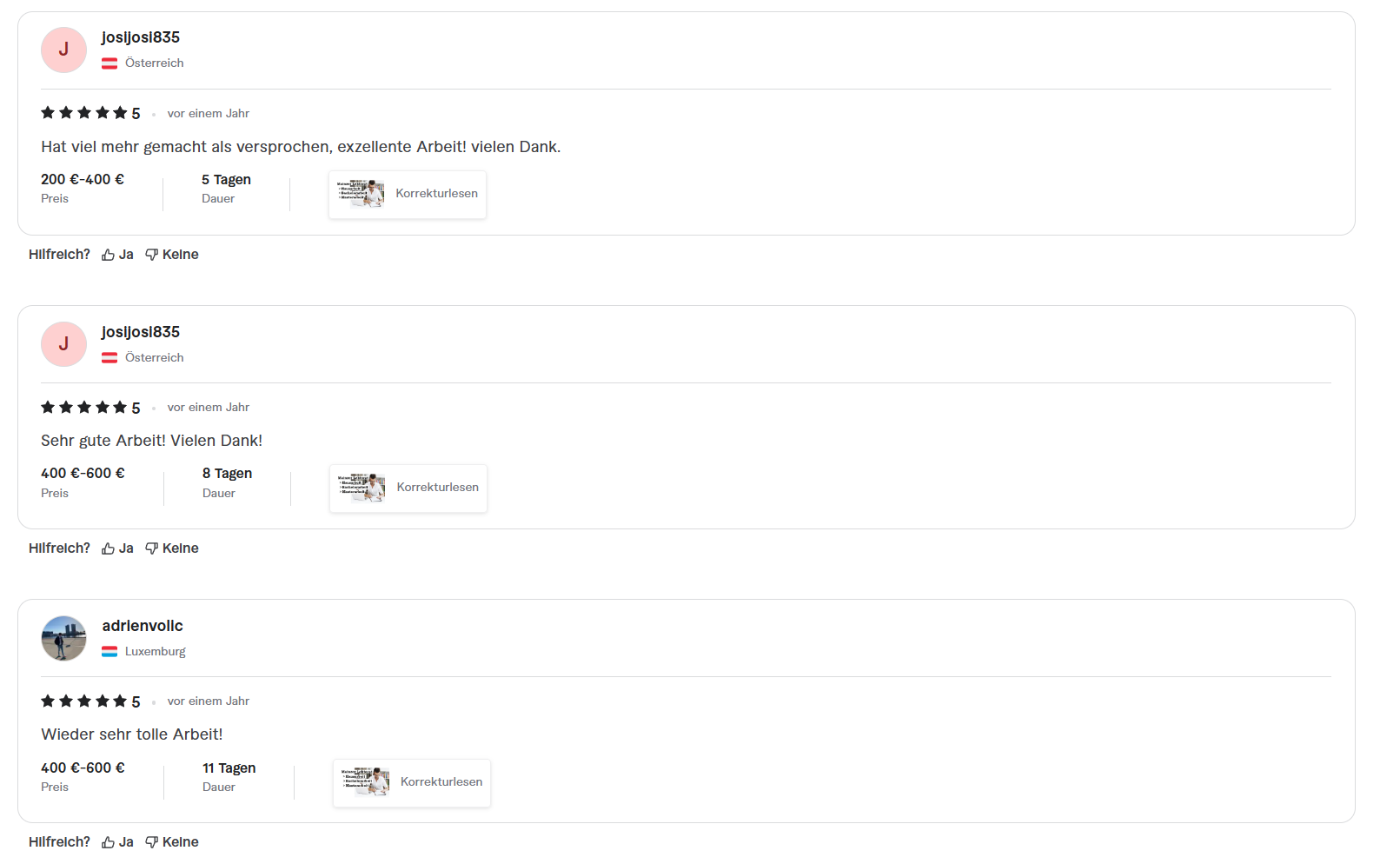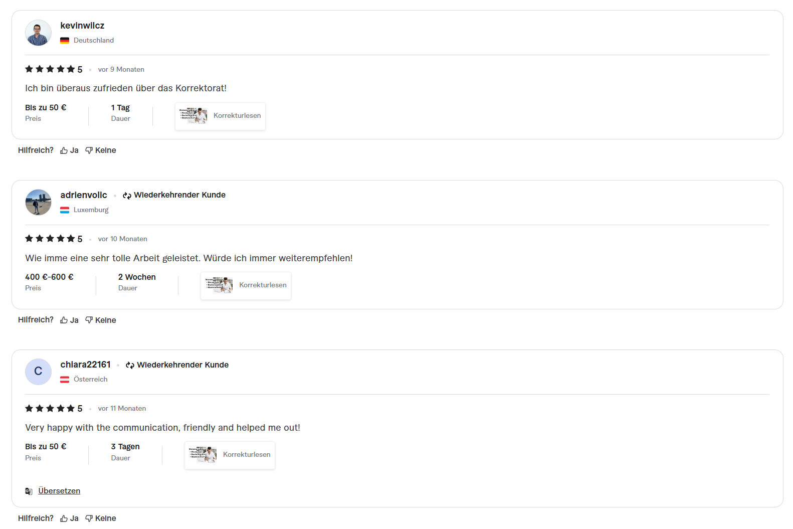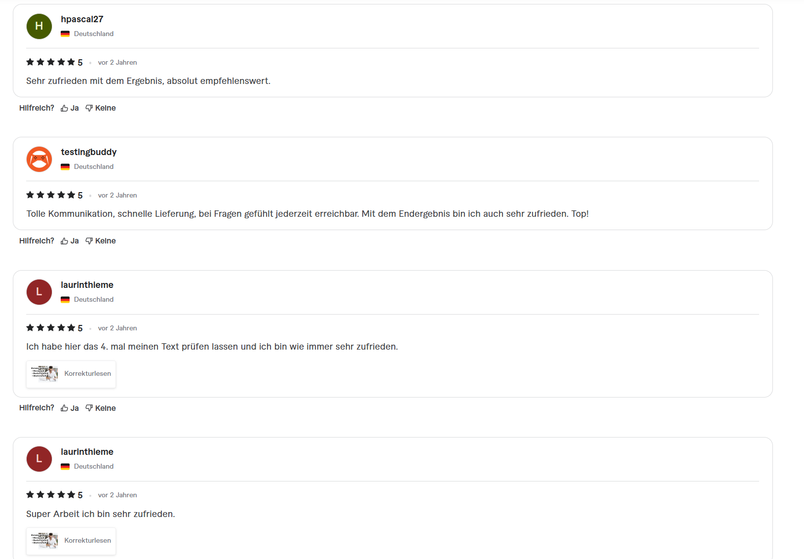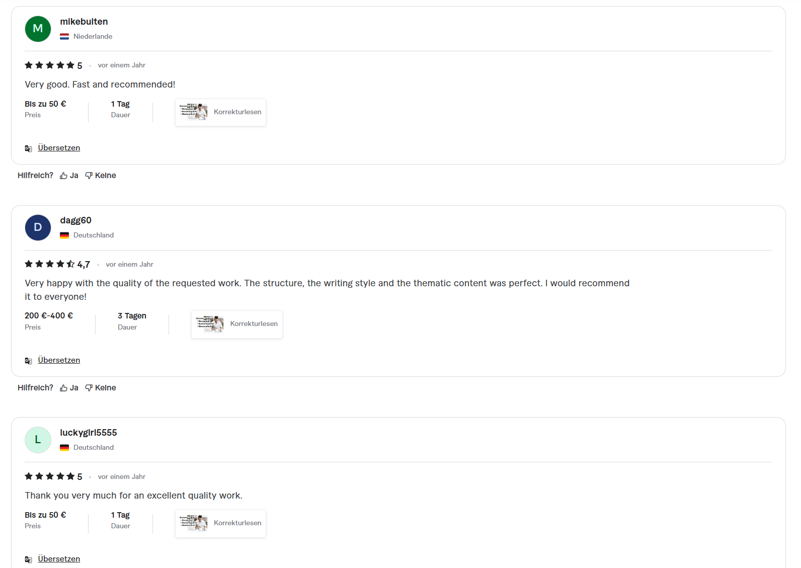 hat den Anspruch, perfekt zu sein. Im Schnitt erreichten die Bachelor-/Master- und Diplomarbeiten, welche von unseren Lektoren überarbeitet wurden, in den Jahren 2021 bis 2024 nach Rückmeldung ein Ergebnis von 1,7 Notenpunkten.